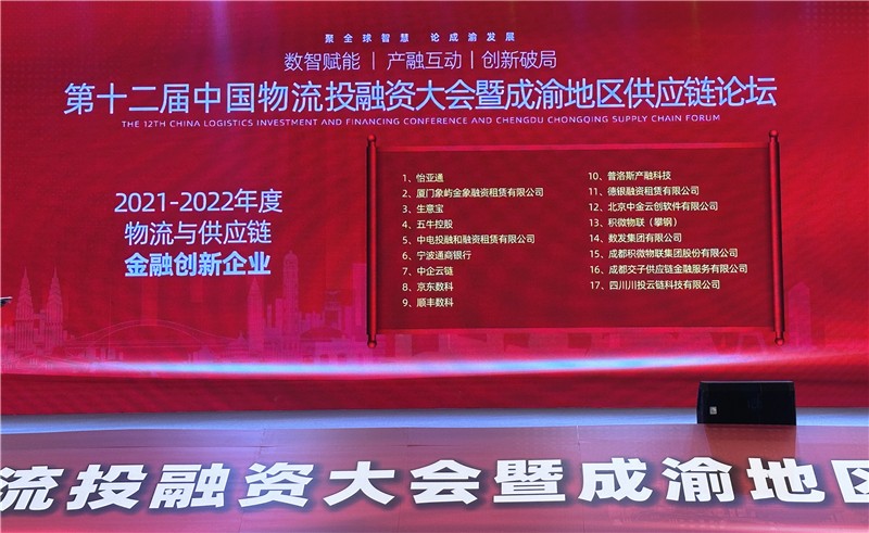 近日,第十二屆中國(guó)物流投融資大會(huì)暨成渝地區(qū)供應(yīng)鏈論壇在成都開(kāi)幕。會(huì)上,川投信產(chǎn)所屬川投云鏈憑借在供應(yīng)鏈金融產(chǎn)品、技術(shù)、服務(wù)等方面的積極探索和創(chuàng)新,被授予“2021-2022年度物流與供應(yīng)鏈金融創(chuàng)新企業(yè)”榮譽(yù)稱號(hào)。