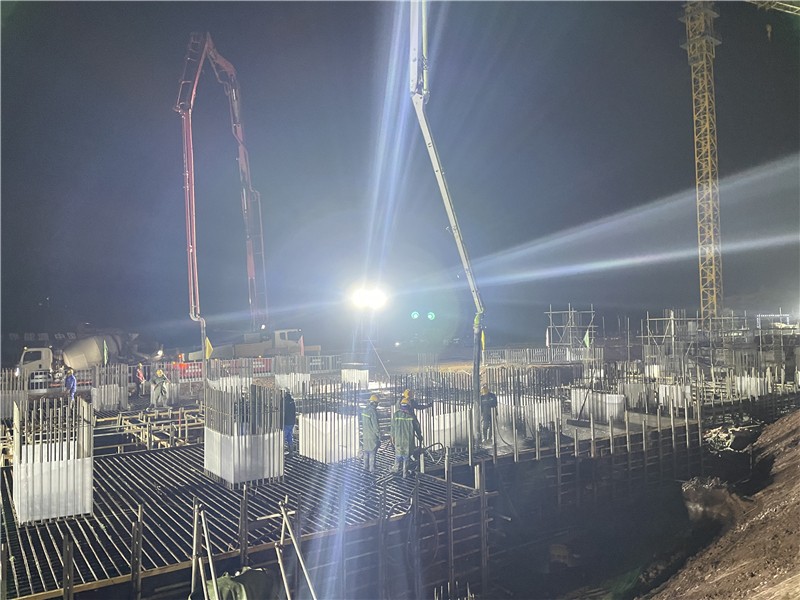 近日,受到西伯利亞寒流影響,安岳縣大幅度降溫并伴有零星降雨,夜間最低氣溫低至1℃左右,給此次大體積混凝土澆筑施工帶來極大影響。資陽氣電提前組織各參建單位認真總結(jié)#1余熱鍋爐筏板基礎(chǔ)澆筑經(jīng)驗、優(yōu)化工序流程和操作規(guī)范,完善澆筑方案,落實具體工作職責到個人。在澆筑過程中,嚴格旁站監(jiān)督,全過程監(jiān)督施工過程。員工食堂還為夜間施工人員準備了熱氣騰騰的包子、饅頭和雞蛋湯,在寒冷的冬夜送去了“家”的溫暖。