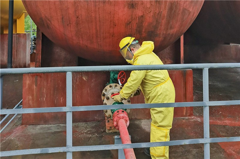 公司高度重視?;返陌踩芾?,定期開展涉及危化品設(shè)備設(shè)施安全隱患排查治理,杜絕因涉酸堿設(shè)備的不可靠而造成浪費甚至不安全現(xiàn)象。由于酸罐內(nèi)檢修作業(yè)場地狹窄,通風(fēng)不暢,且存在酸、塵、煙、毒殘留等不利因素,稍有疏忽,就可能發(fā)生燃燒、爆炸、中毒等意外事故。