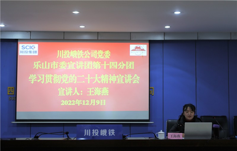 為深入學(xué)習(xí)宣傳貫徹黨的二十大精神,12月9日,川投峨鐵公司邀請樂山市委宣講團(tuán)十四分團(tuán)專家王海燕到公司宣講黨的二十大精神。公司領(lǐng)導(dǎo)班子成員、中層助理及以上管理人員、黨員代表、入黨積極分子代表、職工代表共79人參加。