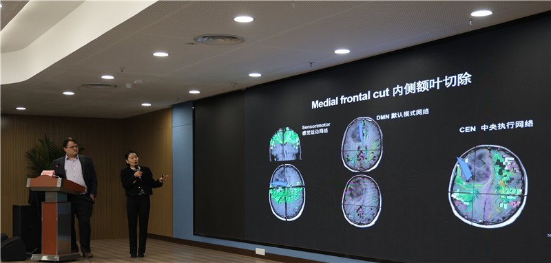 講座上,Sughrue主要介紹了基于腦網(wǎng)絡(luò)的神經(jīng)外科手術(shù)范式,以及介入式神經(jīng)康復(fù)療法,講解了腦連接組學(xué)與腦網(wǎng)絡(luò)的概念,以及如何通過新興的人工智能技術(shù)和機(jī)器學(xué)習(xí)算法更好地利用臨床數(shù)據(jù),推進(jìn)科研發(fā)展以更好地改善患者術(shù)后功能保留和康復(fù)。參會專家針對本次主題與Sughrue進(jìn)行了現(xiàn)場學(xué)術(shù)討論交流。會后,Sughrue還查看了一例到我院求診的偏頭痛患者情況,分析患者MRI數(shù)據(jù)后提供了相應(yīng)的治療建議。