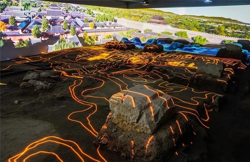 同時,技術(shù)團隊遵循“與遺址展示不爭、不搶”的原則,在遺址表面不裝載設(shè)備的情況下,通過3D互動裝置、動態(tài)長卷、數(shù)字投影、交互AR增強現(xiàn)實和虛擬現(xiàn)實等多種方式,創(chuàng)意再現(xiàn)不同時期的德壽宮遺跡和皇家宮殿建筑園林風(fēng)貌。和其它博物館的數(shù)字化展示相比,德壽宮數(shù)字化復(fù)原展示是直接在遺址空間中進行的,觀眾能夠更切身地體驗時間和空間上的“穿越”。