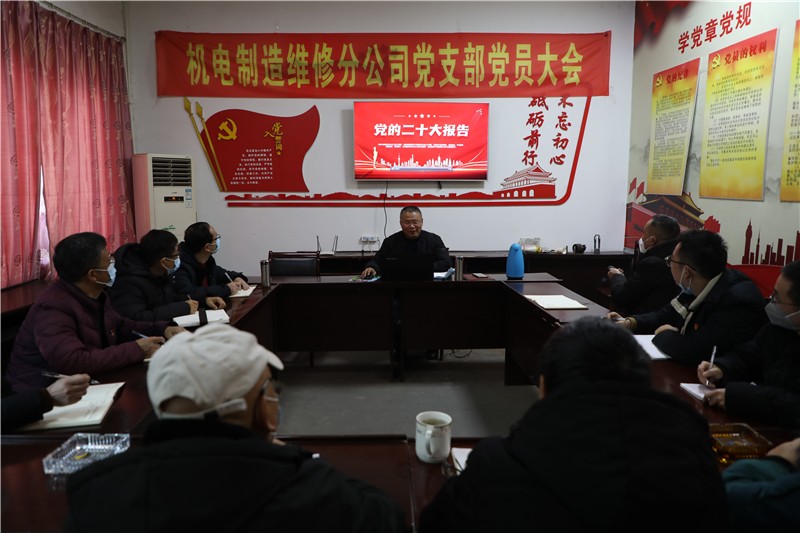 為深入學習貫徹黨的二十大精神和省委第十二屆二次全會精神,根據(jù)集團黨委安排,12月29日下午,副總經理金大鈞赴機電制造維修分公司宣講黨的二十大精神,并提出工作要求。
