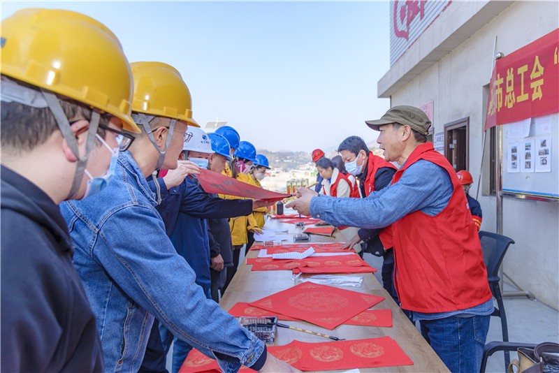 1月17日下午,公司工會(huì)與攀枝花市總工會(huì)聯(lián)合組織開展了送萬(wàn)福、送慰問、宣傳消防安全等活動(dòng)。邀請(qǐng)書法大師為春節(jié)期間堅(jiān)守在工程建設(shè)一線職工繪“福”字、寫春聯(lián)。在“愛心驛站”活動(dòng)現(xiàn)場(chǎng),鋪著紅色春聯(lián)紙的桌子呈一字型排開,書法大師們帶著滿滿的誠(chéng)意與祝福,揮毫潑墨,大家手捧一副副精美的春聯(lián),一個(gè)個(gè)火紅喜慶的“福”字以及新春大禮包,喜悅之情溢于言表。