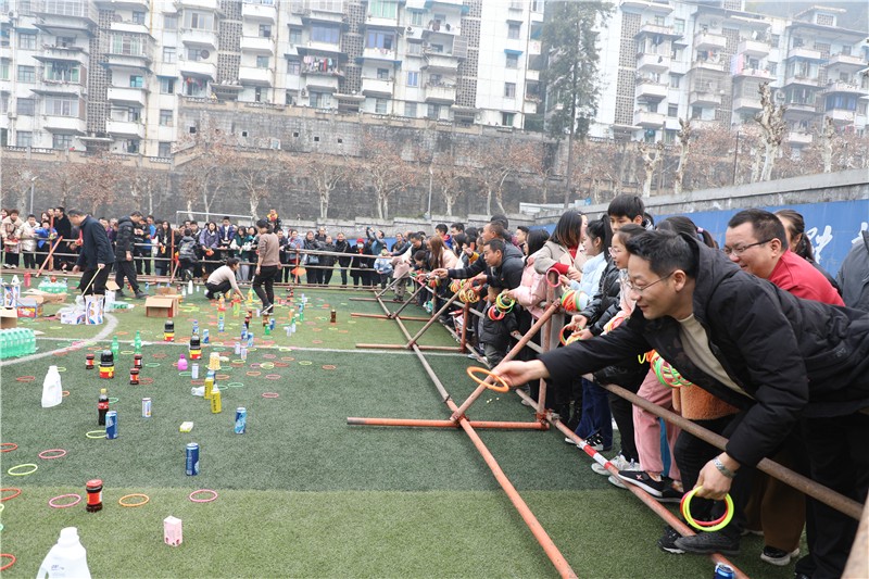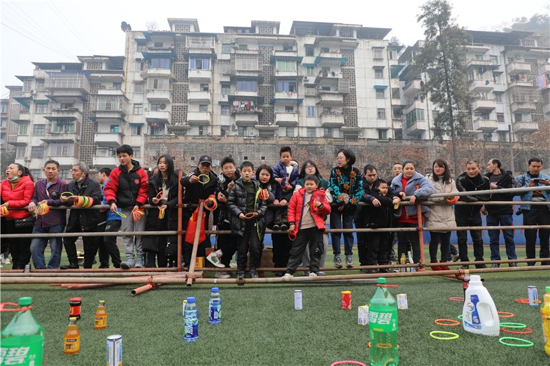 “實(shí)物套圈”與“貳柒拾”爭(zhēng)霸在官斗山足球場(chǎng)同步進(jìn)行,職工們攜妻帶子來(lái)到礦區(qū)“碰運(yùn)氣”。長(zhǎng)方形的活動(dòng)現(xiàn)場(chǎng)圍了個(gè)里三層外三層,等待“出擊”的家屬們,在彩圈售賣處排起的長(zhǎng)龍繞了兩道彎。凝神聚氣、預(yù)估距離,屏住呼吸、瞄準(zhǔn)目標(biāo),轉(zhuǎn)動(dòng)手腕、用力一揮,天空中快速閃過(guò)一道道美麗的拋物線。有套中目標(biāo)豐收喜悅的歡呼,有擦肩而過(guò)的嘆息與加油。套上三兩瓶好酒,回家過(guò)個(gè)熱鬧年,無(wú)論老少,眼里都是希望。