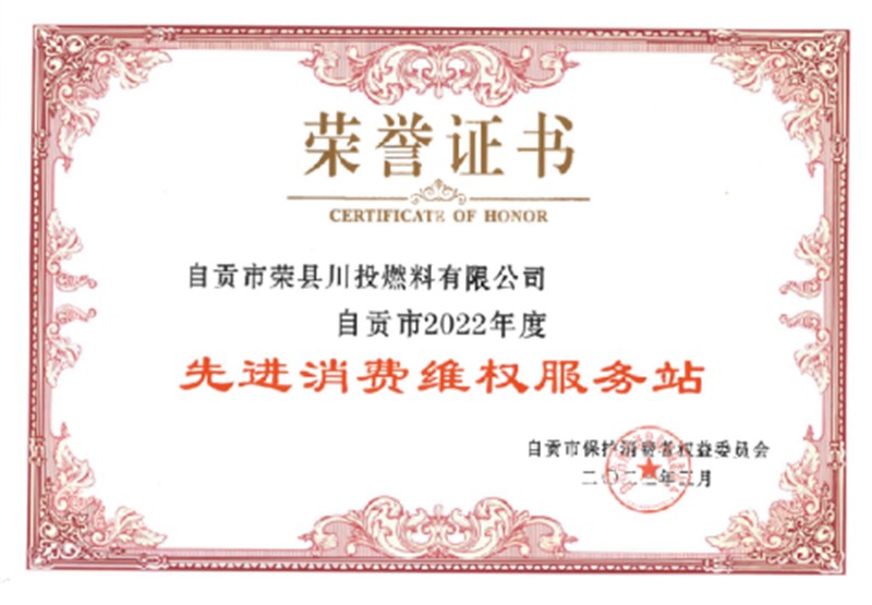 2023年3月,川投燃電集團所屬榮縣川燃公司榮獲“自貢市2022年度先進消費維權(quán)服務(wù)站”稱號,也是榮縣唯一獲此殊榮的單位。