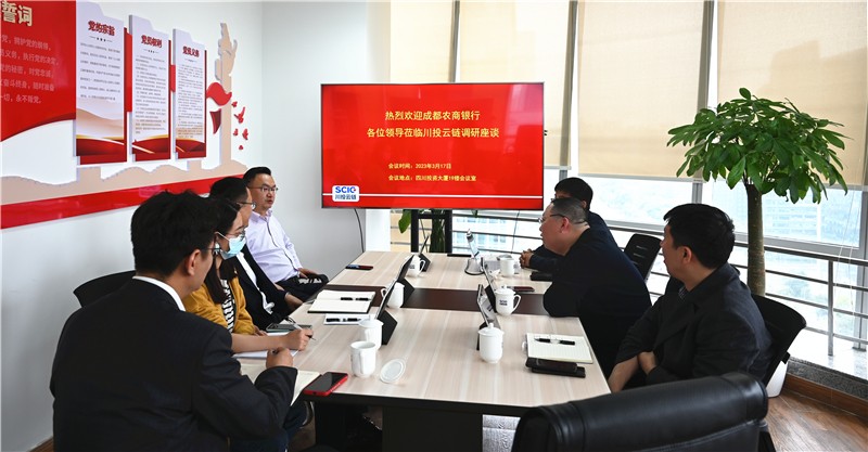 3月17日,成都農(nóng)村商業(yè)銀行總行普惠金融部總經(jīng)理王繼東、雙流支行行長(zhǎng)鄺光勝一行赴川投信產(chǎn)所屬川投云鏈調(diào)研。