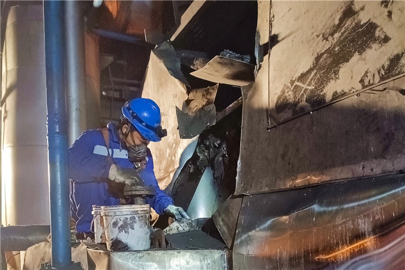 因公司實際燃用的煤炭熱值遠(yuǎn)低于設(shè)計煤種,磨煤機(jī)長期需要超設(shè)計出力運(yùn)行,制粉系統(tǒng)設(shè)備的可靠運(yùn)行對機(jī)組接帶負(fù)荷能力影響較大,極易因某一臺磨煤機(jī)出力不足而導(dǎo)致機(jī)組負(fù)荷欠發(fā)的情況。為提高制粉系統(tǒng)設(shè)備的運(yùn)行可靠性,保證機(jī)組穩(wěn)定接帶負(fù)荷,公司設(shè)備維修部利用2號機(jī)組停機(jī)消缺期間,結(jié)合日常運(yùn)行中暴露出來的薄弱點位,針對性制定了詳盡的檢修措施和計劃。先后完成了給煤機(jī)皮帶及清掃電機(jī)刮板檢查更換、落煤管減薄處補(bǔ)焊、磨煤機(jī)絞龍支撐檢查補(bǔ)焊、分離器清渣及漏粉點堵漏、防爆門定期更換、煤粉管漏粉點補(bǔ)焊等多項作業(yè)面狹窄、施工難度較大的檢修工作任務(wù),最大限度提高了制粉系統(tǒng)設(shè)備的健康水平。