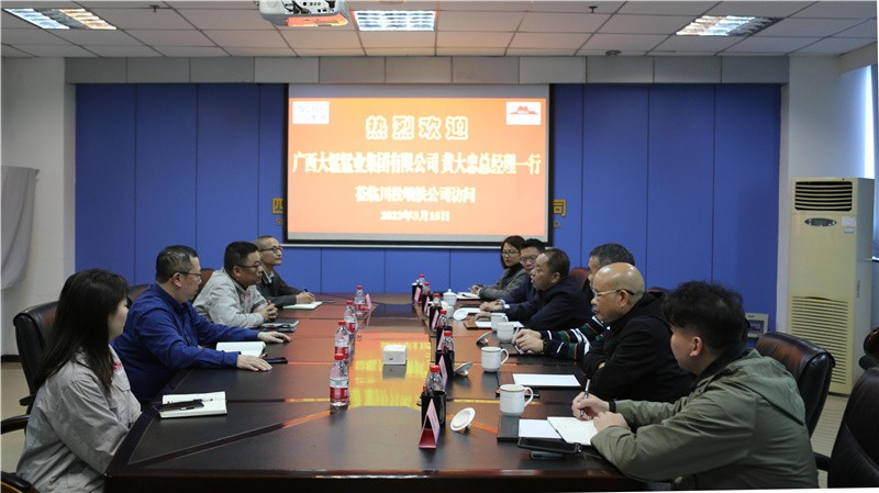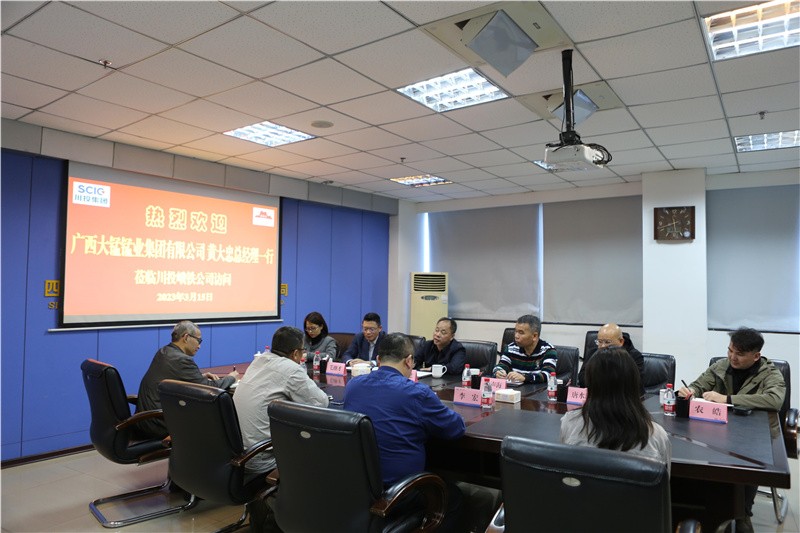 陳新龍對(duì)黃大忠一行到訪公司表示熱烈歡迎,對(duì)廣西大錳錳業(yè)集團(tuán)有限公司對(duì)峨鐵多年來的支持表示感謝,并陪同來訪客人觀看了峨鐵歷史沿革宣傳片,向客人介紹了公司近期經(jīng)營情況;常務(wù)副總經(jīng)理李宏對(duì)2022年公司錳礦購銷情況作了簡要回顧。