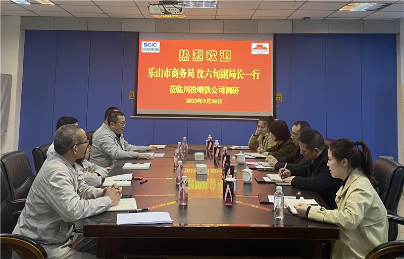 3月30日,樂山市商務(wù)局副局長沈六旬、峨眉山市商務(wù)局局長楊換榮等一行5人到川投峨鐵公司調(diào)研指導(dǎo)外貿(mào)工作。公司總經(jīng)理陳新龍、常務(wù)副總經(jīng)理李宏、總會(huì)計(jì)師方玲、營銷總監(jiān)周全等現(xiàn)場(chǎng)陪同調(diào)研。
