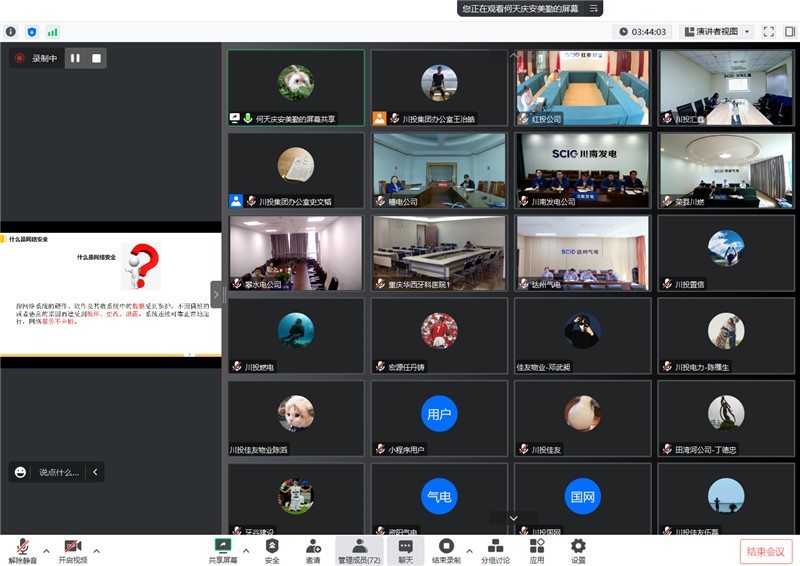 為貫徹落實(shí)網(wǎng)絡(luò)安全和信息化工作有關(guān)要求,進(jìn)一步提升廣大員工的網(wǎng)絡(luò)與信息安全意識(shí),結(jié)合4?15全民國(guó)家安全教育日相關(guān)活動(dòng)安排,4月11日下午,川投集團(tuán)辦公室以線上方式組織召開(kāi)了網(wǎng)絡(luò)安全意識(shí)專(zhuān)題培訓(xùn)會(huì)。