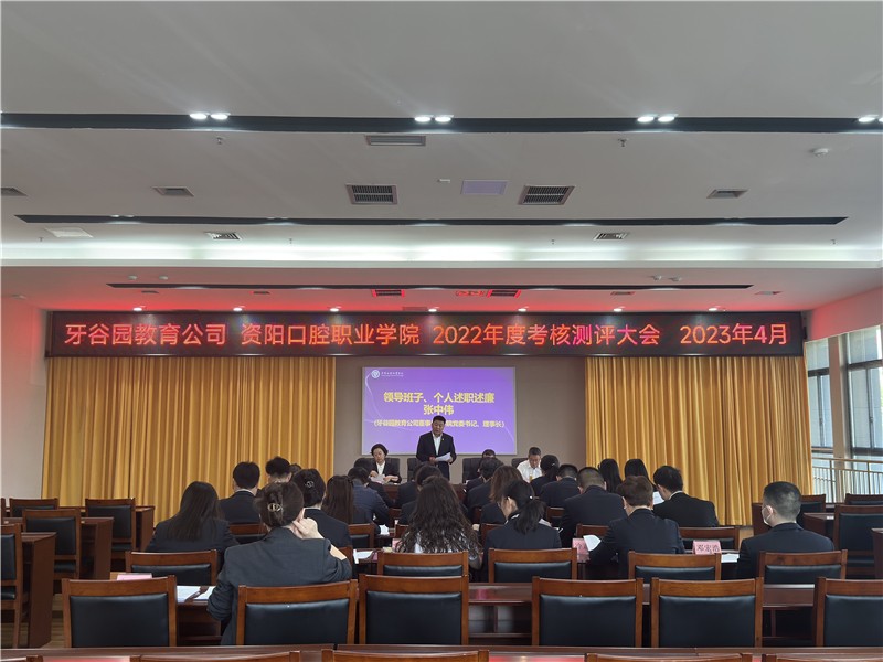 會(huì)上,牙谷園教育公司董事長(zhǎng)、資陽口腔職業(yè)學(xué)院黨委書記、理事長(zhǎng)張中偉代表班子作2022年度領(lǐng)導(dǎo)班子述職報(bào)告。學(xué)院領(lǐng)導(dǎo)班子成員依次作個(gè)人述職述廉報(bào)告。與會(huì)人員在認(rèn)真聽取各項(xiàng)報(bào)告后,對(duì)學(xué)院領(lǐng)導(dǎo)班子及成員政治素質(zhì)、經(jīng)營(yíng)能力、團(tuán)結(jié)協(xié)助、作風(fēng)形象等方面進(jìn)行了民主測(cè)評(píng)。