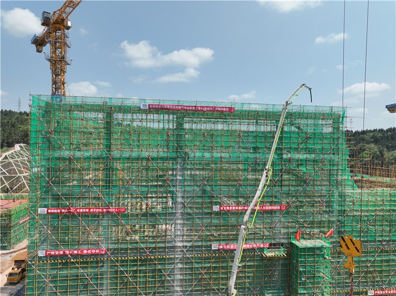 4月27日11:58分,資陽燃氣電站新建工程#1機組主廠房39米層梁、柱砼澆筑結束,標志著#1機組主廠房結構正式到頂。