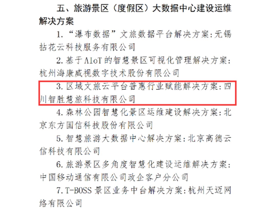 自收到各地文旅景區(qū)發(fā)來的“五一迎峰保運營”相關(guān)感謝信后,近日,川投信產(chǎn)所屬智勝集成子公司智勝慧旅提報的“區(qū)域文旅云平臺普惠行業(yè)賦能解決方案”又成功入選智慧旅游“上云用數(shù)賦智”解決方案首批提名名單。
