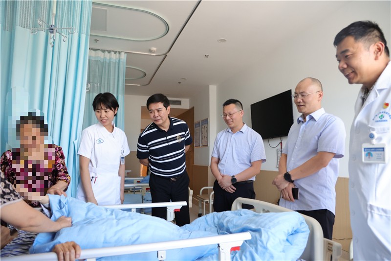 檢查指導(dǎo)組一行先后到醫(yī)院門診大廳、急診部、放射影像中心、健康管理體檢中心、綜合診區(qū)、康復(fù)醫(yī)學(xué)科、十樓病區(qū)等重點區(qū)域,詳細(xì)了解了醫(yī)院建設(shè)、學(xué)科發(fā)展等情況,走進(jìn)病房詢問了患者及醫(yī)務(wù)人員情況。