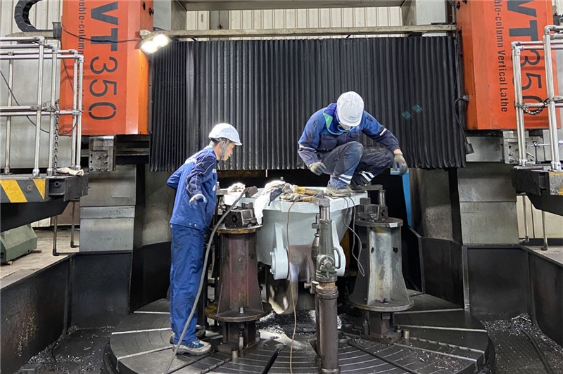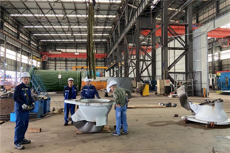 在噴嘴帽吊裝現(xiàn)場(chǎng),五六名作業(yè)人員站在轉(zhuǎn)輪斗葉斜邊和噴嘴本體弧面上,同時(shí)操作8只兩至三噸的手拉葫蘆,將噴嘴帽懸掛于空中不停地調(diào)整翻轉(zhuǎn)角度,以便繞開噴嘴帽與轉(zhuǎn)輪和噴針頭20毫米左右的狹小間隙,防止兩兩之間發(fā)生碰撞,損壞精加工設(shè)備。4月23日,經(jīng)過現(xiàn)場(chǎng)所有人員五天的不懈努力,大發(fā)電站2號(hào)機(jī)組6臺(tái)噴嘴帽拆卸工作順利完成并送往青白江加工廠焊接修復(fù)處理。緊接著,公司又派專業(yè)技術(shù)骨干到加工現(xiàn)場(chǎng)跟蹤噴嘴帽修復(fù)質(zhì)量和進(jìn)度,并根據(jù)現(xiàn)場(chǎng)修復(fù)情況及時(shí)調(diào)整修復(fù)方案,不僅保證了修復(fù)質(zhì)量,還較預(yù)計(jì)工期提前了兩天返回電站現(xiàn)場(chǎng)投入安裝。