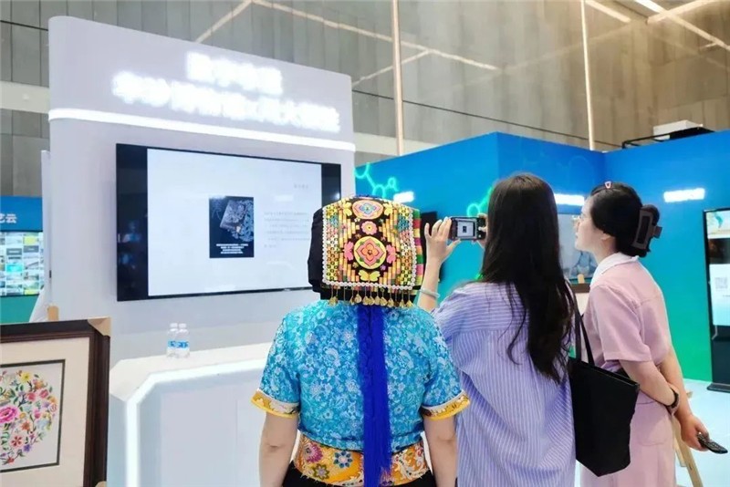 走進(jìn)室內(nèi),智勝集成聚焦數(shù)字非遺、數(shù)字文博,特別聯(lián)合成都華珍藏羌文化博物館,帶來環(huán)球影業(yè)聯(lián)名侏羅紀(jì)世界數(shù)字文創(chuàng)等產(chǎn)品,并邀請藏羌織繡代表性傳承人蘇先芹老師蒞臨會場現(xiàn)場表演工藝制作,展現(xiàn)數(shù)字技術(shù)、國際IP與中國傳統(tǒng)藝術(shù)的絕妙組合。觀眾還可通過文物數(shù)字在線互動展示系統(tǒng)的大尺寸觸摸屏查詢博物館館藏文物信息,觀賞三維模型動態(tài)展示,體驗多角度、全面立體的視聽語言,感受數(shù)字文博時代魅力。