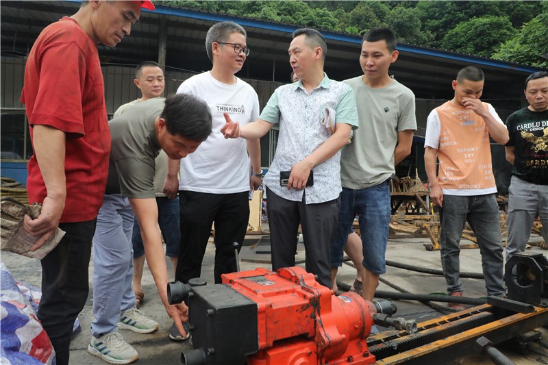 培訓(xùn)由煤礦核算組牽頭組織,50余名掘進(jìn)崗位職工和礦辦科室掘進(jìn)技術(shù)管理人員分5批在兩個(gè)會(huì)議室和工業(yè)廣場接受理論和實(shí)操循環(huán)培訓(xùn)。雷管起爆控制器由生產(chǎn)技術(shù)科科長潘剛主講,梳理控制器收發(fā)與領(lǐng)用、井下使用注意事項(xiàng)、控制器的保養(yǎng)與維修、性能參數(shù)與校驗(yàn)等內(nèi)容,以提升領(lǐng)取、使用和日常維護(hù)控制器的崗位人員標(biāo)準(zhǔn)操作意識(shí),規(guī)范工作流程。通風(fēng)科技術(shù)員楊軒從鉆機(jī)型號及鉆機(jī)架構(gòu),鉆孔方位角、傾角的確定,防噴裝置的作用及安裝要求,鉆孔封孔工藝要求等方面講解了鉆機(jī)實(shí)用操作知識(shí),指出注意事項(xiàng)。培訓(xùn)外請了重慶大學(xué)的鄒德均博士來礦傳經(jīng)送寶,從煤礦巷道錨桿支護(hù)支護(hù)演化歷程,與錨桿支護(hù)有關(guān)的《規(guī)范》,煤礦巷道錨桿支護(hù)理論的缺陷,煤礦巷道錨桿支護(hù)、現(xiàn)場施工和錨桿支護(hù)監(jiān)測存在的問題及解決辦法等方面解答職工疑問。
