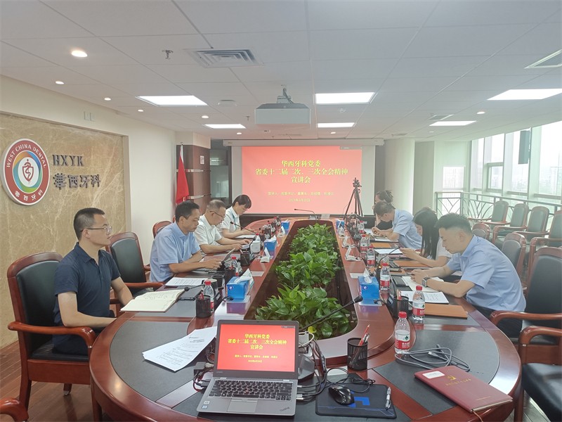 6月20日,華西牙科黨委組織召開專題會議,傳達學(xué)習(xí)省委十二屆二次、三次全會精神。華西牙科黨委書記、董事長、總經(jīng)理劉凌云主持會議,黨委副書記、工會主席金晶,黨委委員、副總經(jīng)理劉云戈,副總經(jīng)理李景雨以及各黨(總)支部書記、支部委員15人參加會議。