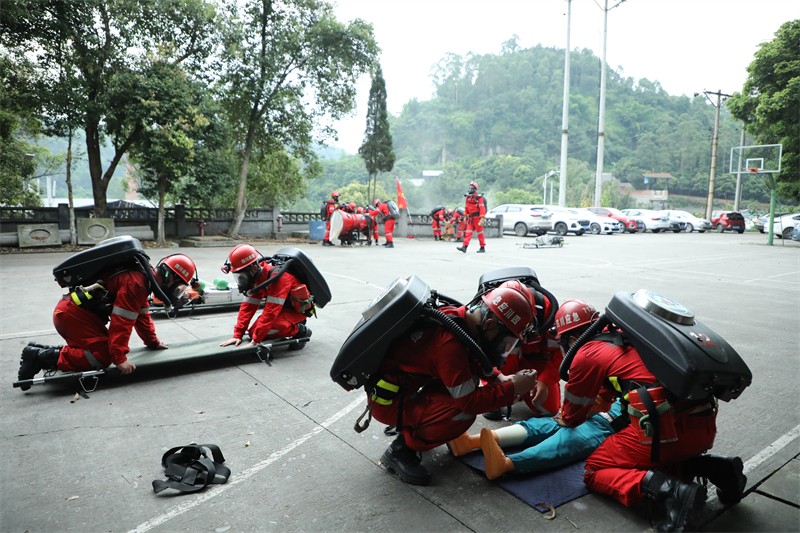 為培養(yǎng)“對黨忠誠,紀(jì)律嚴(yán)明,赴湯蹈火,竭誠為民”的應(yīng)援救援隊伍,達(dá)到以練為戰(zhàn)、以戰(zhàn)促訓(xùn)、戰(zhàn)訓(xùn)合一的目的,根據(jù)嘉陽集團(tuán)2023年安全月活動的相關(guān)安排,6月20日,嘉陽礦山救護(hù)隊與樂山市礦山救護(hù)支隊開展了聯(lián)合演練,兩支隊伍共33人參與。