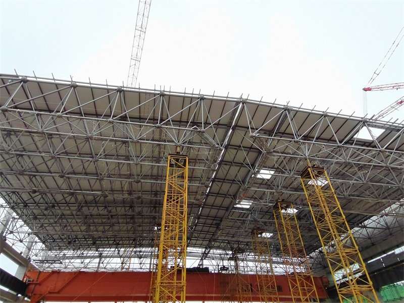 資陽燃氣電站主廠房屋面網(wǎng)架標高位于31.65m,主要由焊接球、圓管組成,共分16個分塊組合安裝,1號機組安裝1-8號分塊。為確保按時完成止水節(jié)點目標任務(wù),參建單位成立專班小組,組建組合隊、吊裝隊、焊接隊、拼板隊等四個施工小隊,現(xiàn)場設(shè)置4個組合場、1個拼裝場。作業(yè)期間,專班小組統(tǒng)一協(xié)調(diào),明確各小隊分工,科學(xué)規(guī)劃作業(yè)順序,做實做細高空作業(yè)安全技術(shù)交底和各項措施,確保安裝工作有序推進。資陽氣電、項目監(jiān)理部專人全程跟蹤施工作業(yè)過程,牢牢把握安全、質(zhì)量兩個核心,確保安裝質(zhì)量;參建各方克服了近期暴雨天氣、高溫暑熱等不利因素,高質(zhì)量完成了止水工作。