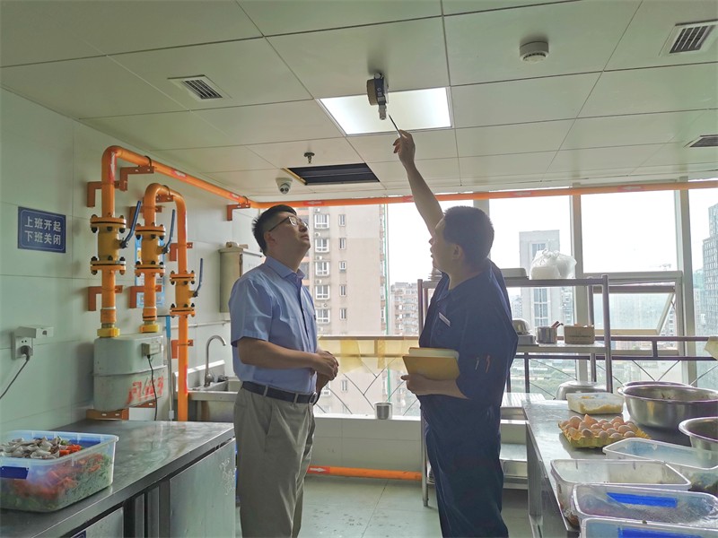 隨后,李景雨一行繼續(xù)查看了消防監(jiān)控室、消防供水機(jī)房、燃?xì)忮仩t房、電動(dòng)自行車充電區(qū)等重點(diǎn)部位,對表檢查了安全環(huán)保、防火減災(zāi)相關(guān)制度文件,汛期、大運(yùn)會(huì)期間值班記錄及安全隱患自查臺(tái)賬等。他要求,一是加強(qiáng)學(xué)習(xí)習(xí)近平總書記關(guān)于安全生產(chǎn)的重要論述,提高政治站位,深化思想認(rèn)識,強(qiáng)化責(zé)任擔(dān)當(dāng),全面落實(shí)安全工作責(zé)任目標(biāo)。二是燃?xì)獍踩褂檬且豁?xiàng)至關(guān)重要的工作,相關(guān)人員一定要認(rèn)真吸取“寧夏銀川燒烤店燃?xì)獗ㄊ鹿省苯逃?xùn),傳達(dá)落實(shí)習(xí)近平對事故作出的重要指示,嚴(yán)格執(zhí)行相關(guān)安全管理規(guī)定,做好燃?xì)庠O(shè)備日常巡檢、做好人員安全教育培訓(xùn)、做好消防設(shè)施設(shè)備維護(hù)。三是雨季汛期持續(xù),四川口院和物業(yè)公司一定要再次檢查應(yīng)急物資儲(chǔ)備情況,相關(guān)工作人員要再熟悉應(yīng)急預(yù)案、再回顧應(yīng)急演練、再排查風(fēng)險(xiǎn)隱患,確保災(zāi)害來臨時(shí),隊(duì)伍能拉得出、頂?shù)蒙?、打得贏。