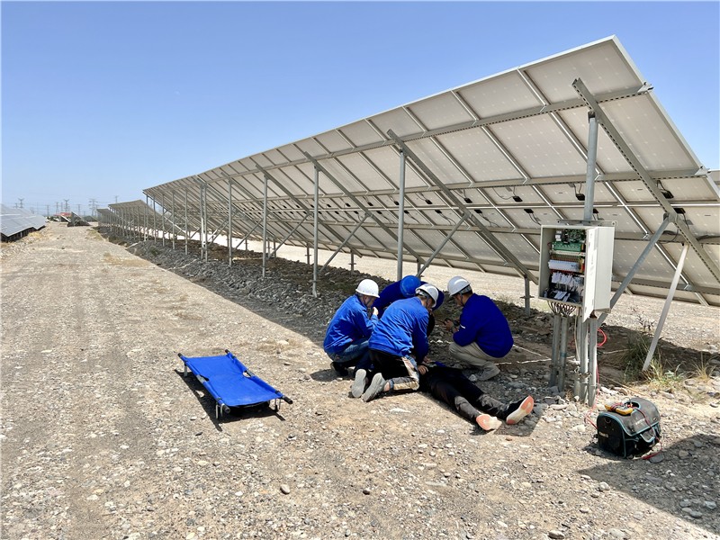 安全生產(chǎn)月期間,公司所屬酒泉光伏電站開展了模擬運(yùn)維人員在巡檢過(guò)程中觸電的應(yīng)急演練,石嘴山光伏電站開展了模擬突發(fā)火情消防應(yīng)急演練,顯著提升了電站防災(zāi)避險(xiǎn)和自救互救的能力,筑牢安全生產(chǎn)的防線,確保電站的有序生產(chǎn)。