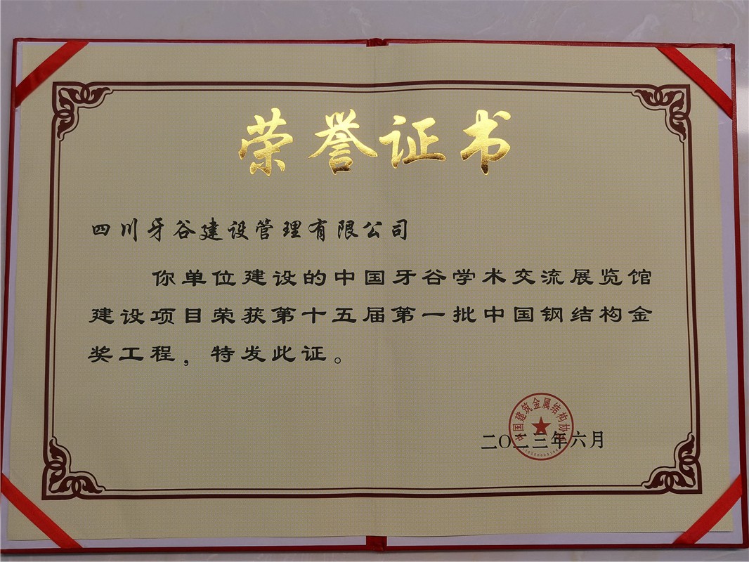 近日,中國建筑金屬結(jié)構(gòu)協(xié)會正式頒發(fā)了中國牙谷學術(shù)交流展覽館建設項目榮獲中國鋼結(jié)構(gòu)金獎的獎杯與獎狀,該獎項是中國建筑鋼結(jié)構(gòu)行業(yè)工程質(zhì)量的最高榮譽獎。中國牙谷學術(shù)交流展覽館建設項目是公司投資、建設中國牙谷PPP項目五個項目之一,位于資陽市高新區(qū),總建筑面積約6.27萬平方米。