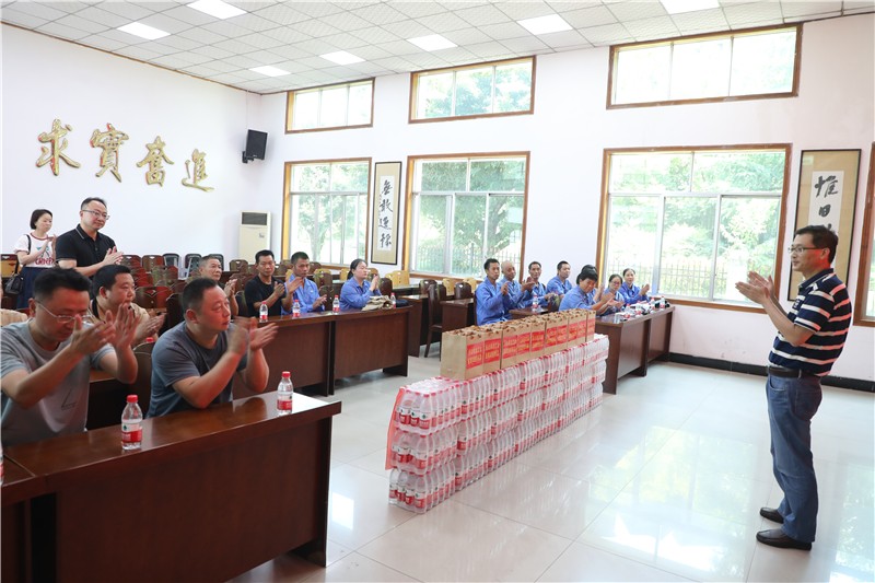 在嘉陽集團(tuán)底樓會(huì)議室,鄭祝彬主任向嘉陽煤礦、機(jī)電制造維修分公司、綜合服務(wù)公司、物資供銷公司等二級(jí)生產(chǎn)單位高溫戰(zhàn)線的20名優(yōu)秀職工和生產(chǎn)骨干致敬,對(duì)他們在高溫酷暑下堅(jiān)守崗位、認(rèn)真履職盡責(zé)、確保安全生產(chǎn)道一聲辛苦了,他叮囑大家一定要注意防暑降溫、合理安排作息時(shí)間,切實(shí)做好防暑降溫工作。隨后,鄭祝彬?yàn)榇蠹宜蜕暇栈?、金銀花、茶葉等防暑慰問品。黨委副書記、工會(huì)主席謝建國代表企業(yè)感謝市總工會(huì)長期以來對(duì)企業(yè)的支持和礦山職工的關(guān)愛。面對(duì)酷暑天氣,嘉陽集團(tuán)工會(huì)將持續(xù)引導(dǎo)企業(yè)各基層工會(huì)結(jié)合實(shí)際開展好“送清涼”活動(dòng),切實(shí)保障廣大職工的生命安全和身體健康。