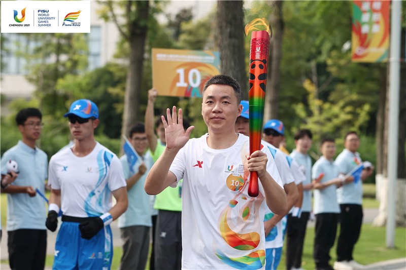 奮斗青春,放飛夢(mèng)想。7月20日,來(lái)自川投信產(chǎn)所屬宏明雙新模具保障部的陳自力光榮獲選第31屆世界大學(xué)生夏季運(yùn)動(dòng)會(huì)火炬?zhèn)鬟f成都站(第四日)第10棒火炬手,他高舉燃燒的火炬,以昂揚(yáng)的姿態(tài)、堅(jiān)定的步伐,圓滿完成火炬?zhèn)鬟f任務(wù)。