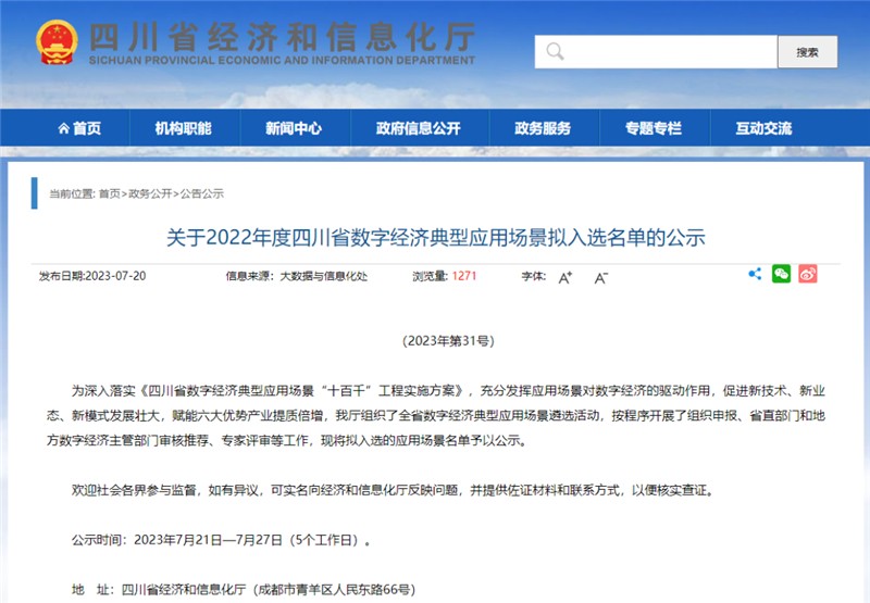 根據(jù)《四川省數(shù)字經(jīng)濟(jì)典型應(yīng)用場(chǎng)景“十百千”工程實(shí)施方案》工作要求,四川省經(jīng)濟(jì)和信息化廳組織開展了本次數(shù)字經(jīng)濟(jì)典型應(yīng)用場(chǎng)景遴選活動(dòng),并面向全省征集相關(guān)產(chǎn)品、技術(shù)和解決方案,經(jīng)組織申報(bào)、主管部門審核推薦、專家評(píng)審后,最終產(chǎn)生該擬入選名單。