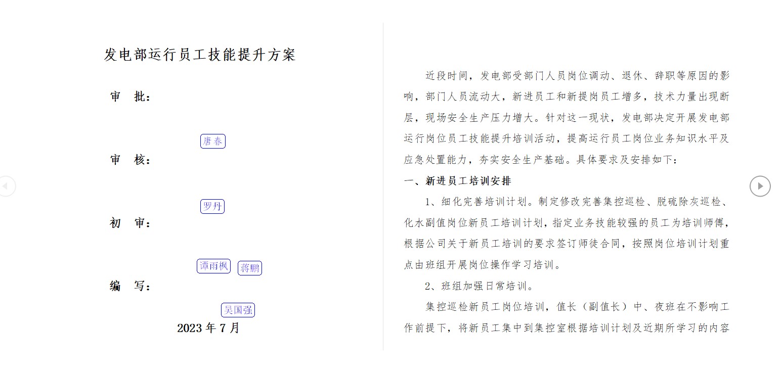 近日,公司啟動發(fā)電運行員工技能提升專項行動,制定了《發(fā)電部運行員工技能提升方案》。此次技能提升專項行動也是公司“安全管理基礎提升年”的活動之一。