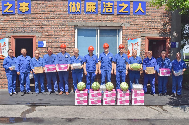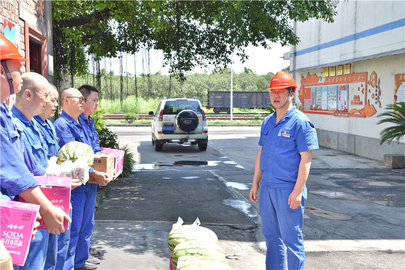 近日來(lái),瀘州地區(qū)持續(xù)高溫天氣,8月9日、10日連續(xù)兩天最高氣溫均超過(guò)了35℃。為持續(xù)做好現(xiàn)場(chǎng)員工防暑降溫工作,8月10日下午14時(shí)30分,公司黨委書(shū)記、董事長(zhǎng)劉勝金帶隊(duì)到生產(chǎn)現(xiàn)場(chǎng)開(kāi)展“送清涼”慰問(wèn)活動(dòng)。