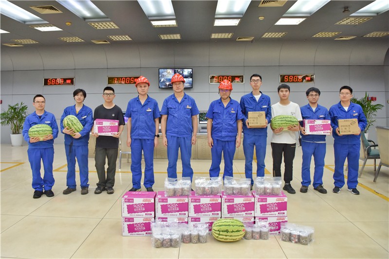 黨委副書(shū)記、總經(jīng)理陳嵩,黨委副書(shū)記、工會(huì)主席黃松一起參加現(xiàn)場(chǎng)慰問(wèn)。領(lǐng)導(dǎo)為員工們送上了蘇打水、泡袋茶、西瓜、冰糕等防暑降溫飲用品,并查看了燃煤質(zhì)檢部采樣班現(xiàn)場(chǎng)存放相關(guān)冷飲、冰糕的冰柜,督促做好相關(guān)物品的質(zhì)量管控,確保防暑降溫工作準(zhǔn)備足、用得好。