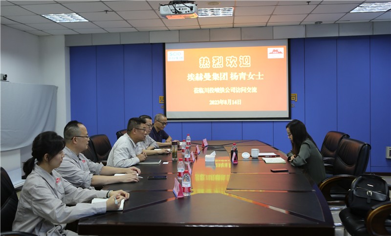 8月14日,埃赫曼集團中國銷售經(jīng)理楊青到訪川投峨鐵公司,川投峨鐵公司黨委副書記、總經(jīng)理陳新龍,黨委委員、常務副總經(jīng)理李宏在908會議室與來訪客人進行了交流座談。