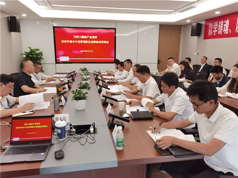 為深入開(kāi)展學(xué)習(xí)貫徹習(xí)近平新時(shí)代中國(guó)特色社會(huì)主義思想主題教育,按照黨管干部、黨管人才的原則,落實(shí)國(guó)有企業(yè)勞動(dòng)人事分配三項(xiàng)制度改革,推動(dòng)干部“能上能下”,建設(shè)一支充滿(mǎn)生機(jī)和活力的高素質(zhì)干部隊(duì)伍,8月25日,川投大健康產(chǎn)業(yè)集團(tuán)組織開(kāi)展本部部分中層管理職位競(jìng)聘演講答辯會(huì)議。黨委書(shū)記、董事長(zhǎng)、總經(jīng)理魯洪斌出席會(huì)議并講話。評(píng)委、監(jiān)督人員、競(jìng)聘人員共計(jì)25人參加會(huì)議。
