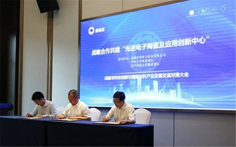 為貫徹落實(shí)中共成都市委《關(guān)于堅(jiān)持科技創(chuàng)新引領(lǐng)加快建設(shè)現(xiàn)代化產(chǎn)業(yè)體系的決定》精神,本次會(huì)議重點(diǎn)圍繞打造“鏈主企業(yè)+公共平臺(tái)+產(chǎn)業(yè)基金+領(lǐng)軍人才+中介機(jī)構(gòu)”產(chǎn)業(yè)生態(tài)體系,以“科技引領(lǐng) 產(chǎn)業(yè)創(chuàng)新 知產(chǎn)賦能”為主題開(kāi)展多場(chǎng)交流合作。會(huì)上,宏明電子同四川大學(xué)、電子科技大學(xué)團(tuán)隊(duì)簽署《戰(zhàn)略合作共建“先進(jìn)電子陶瓷及應(yīng)用創(chuàng)新中心”協(xié)議》。成都市經(jīng)信局新材料產(chǎn)業(yè)處長(zhǎng)路遠(yuǎn)向宏明電子總經(jīng)理劉尊述進(jìn)行首任輪值理事長(zhǎng)單位授牌,隨后,劉尊述向四川大學(xué)李光憲教授頒授名譽(yù)理事長(zhǎng)聘書(shū)。
