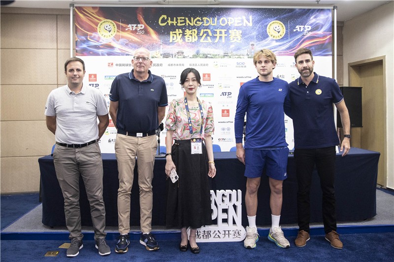 9月18日下午,ATP成都公開賽抽簽儀式在川投國網(wǎng)舉行,出席抽簽儀式的有ATP督導漢斯-于爾根·奧克斯,ATP巡回賽經(jīng)理阿爾諾·布魯格斯,成都公開賽賽事總監(jiān)路易斯·卡瓦略,川投國網(wǎng)公司黨委書記、執(zhí)行董事白蕾,比利時網(wǎng)球選手球員代表齊祖·貝爾赫斯,以及近30家媒體代表。