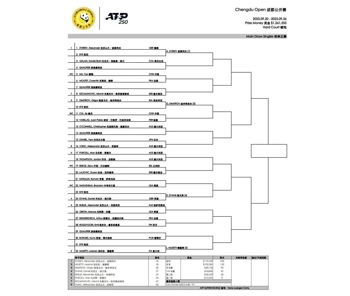 萬眾期待的2023年ATP成都公開賽簽表火熱出爐,明日將率先展開資格賽的對決,讓我們一起感受體育帶來的力量與浪漫,期待這場闊別三年的青春風暴再度席卷蓉城。