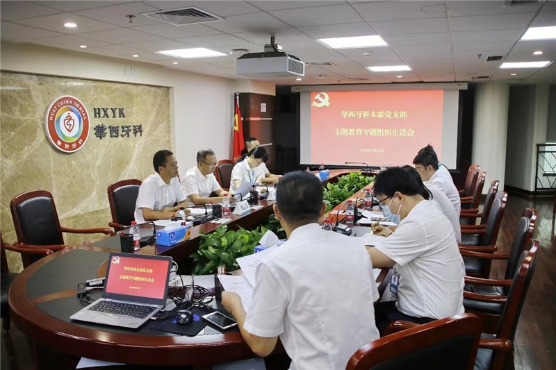 根據華西牙科黨委統一安排部署,9月14日,華西牙科本部黨支部組織召開了主題教育專題組織生活會,公司班子成員以普通黨員身份參會,會議由支部書記李國慶主持。