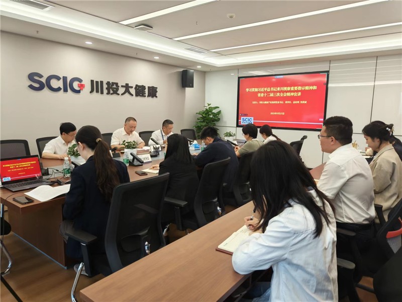 為深入學(xué)習(xí)宣傳貫徹習(xí)近平總書記來川視察重要指示精神和省委十二屆三次全會精神,推動上級決策部署在川投大健康產(chǎn)業(yè)集團(tuán)落實(shí)落細(xì),9月27日,川投大健康產(chǎn)業(yè)集團(tuán)黨委書記、董事長、總經(jīng)理魯洪斌面向全產(chǎn)業(yè)集團(tuán)宣講習(xí)近平總書記來川視察重要指示精神和省委十二屆三次全會精神,黨委副書記、職工董事、工會主席王少甫主持會議。