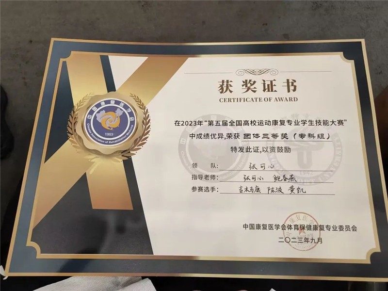 本次大賽采取“理論考試+技能操作”組合方式進(jìn)行,重在考評(píng)學(xué)生專業(yè)基礎(chǔ)理論和專業(yè)基本操作,涵蓋了心肺復(fù)蘇、運(yùn)動(dòng)防護(hù)、肌肉骨骼康復(fù)、運(yùn)動(dòng)處方等多個(gè)領(lǐng)域的內(nèi)容。通過前期選拔與考核,由吉木馬康,黃凱,陳波三名學(xué)生組成代表隊(duì),在指導(dǎo)教師張可心、鮑春燕的帶領(lǐng)下,在本次大賽中不畏強(qiáng)手、奮勇拼搏,榮獲團(tuán)體三等獎(jiǎng),全能比賽三等獎(jiǎng)、運(yùn)動(dòng)防護(hù)、理論考試、肌肉骨骼康復(fù)賽道單項(xiàng)三等獎(jiǎng)三項(xiàng)。
