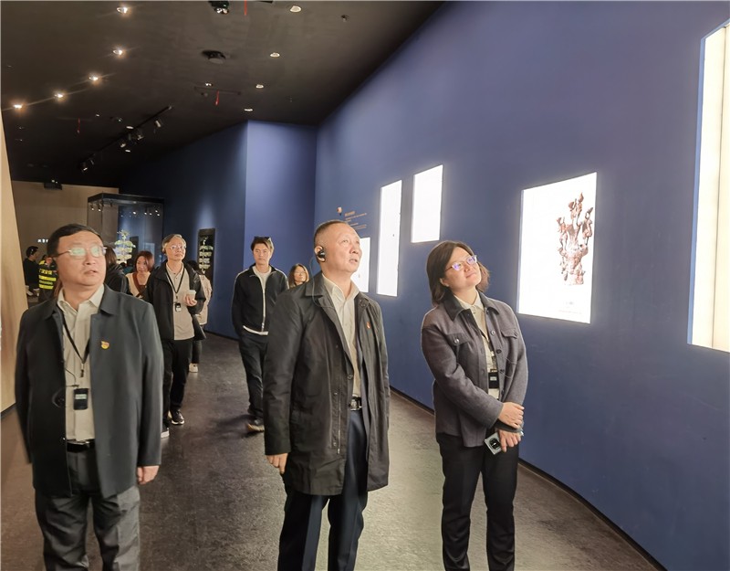 隨后,大家走進三星堆博物館,逐一參觀“世紀逐夢”、“巍然王都”、“天地人神”三大展區(qū),系統(tǒng)了解三星堆考古研究成果、三星堆古國的自然環(huán)境和社會風貌,感受三星堆考古工作者百年逐夢、矢志不渝的精神追求,領略中華文明的包容性與創(chuàng)新性,深刻感悟到習近平總書記關于弘揚工匠精神、增強文化自信的重要指示精神的價值意義。